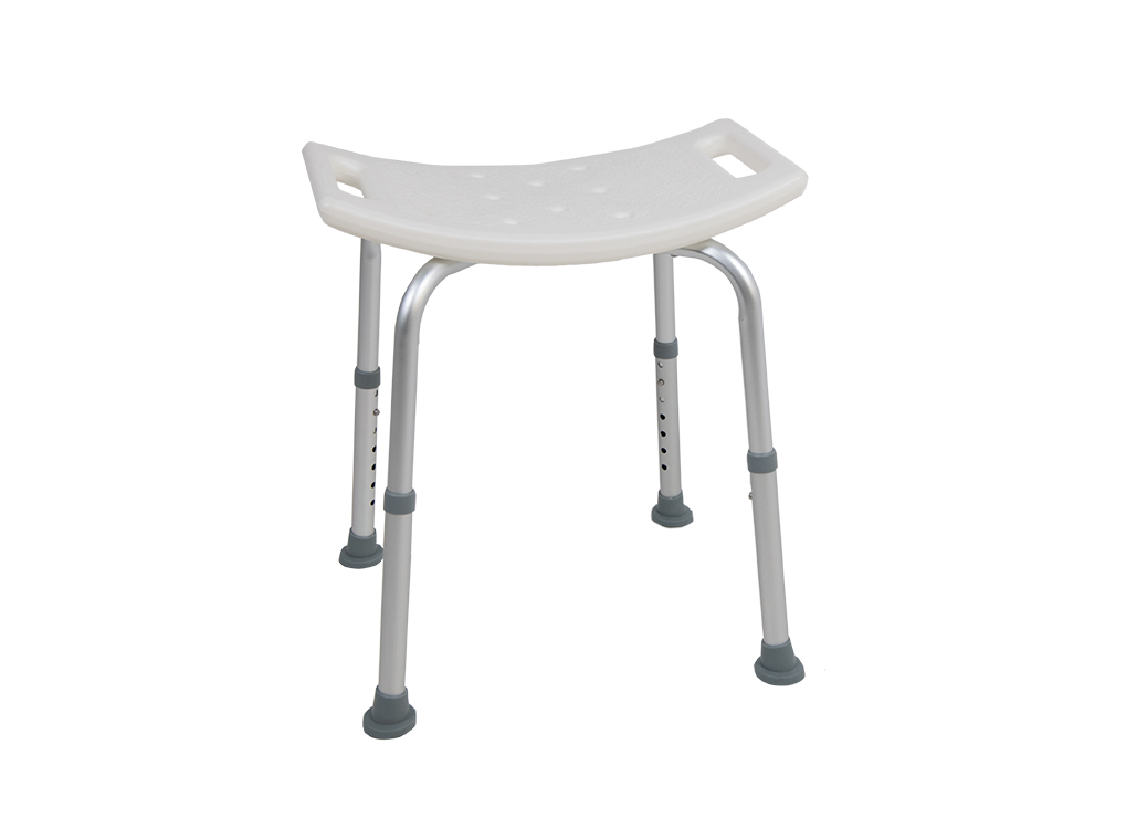 Banqueta de ducha de aluminio sin respaldo. Regulable en altura.