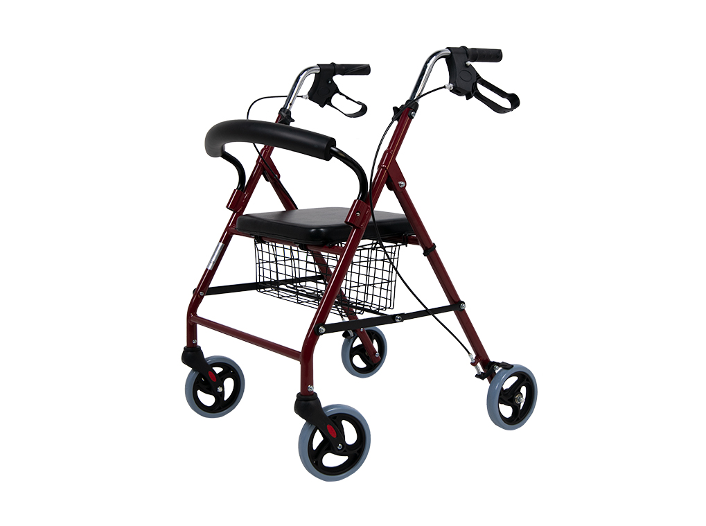 Dispone de 4 ruedas, las delanteras giratorias 360º y con freno las traseros que se activa desde la empuñadura.