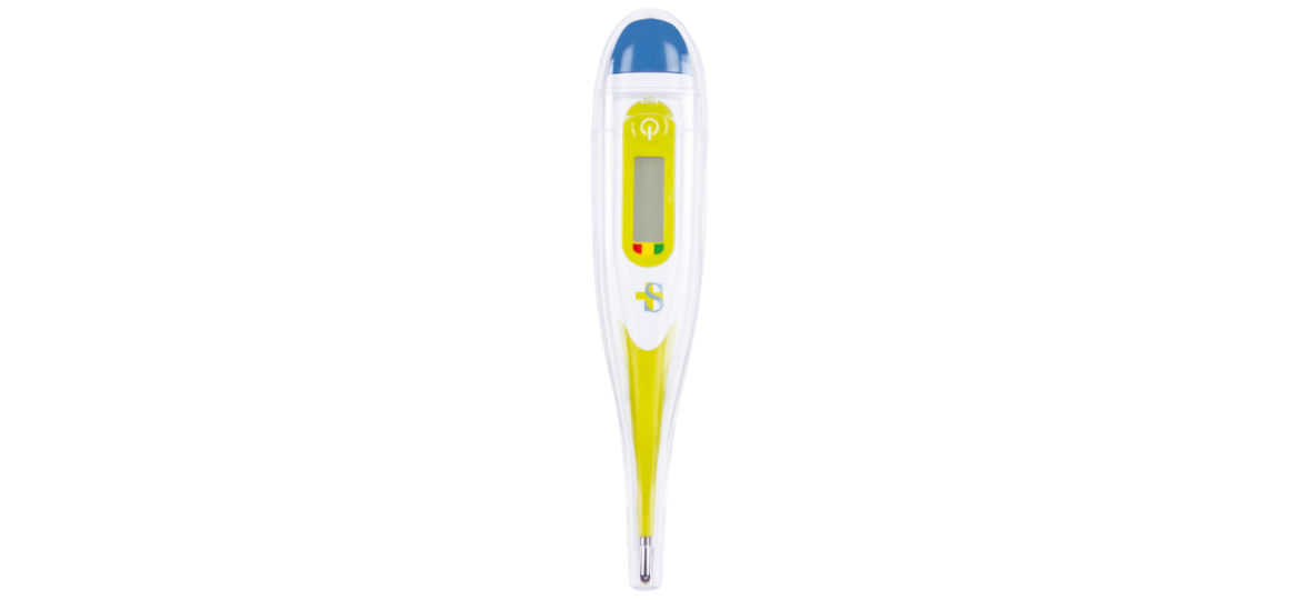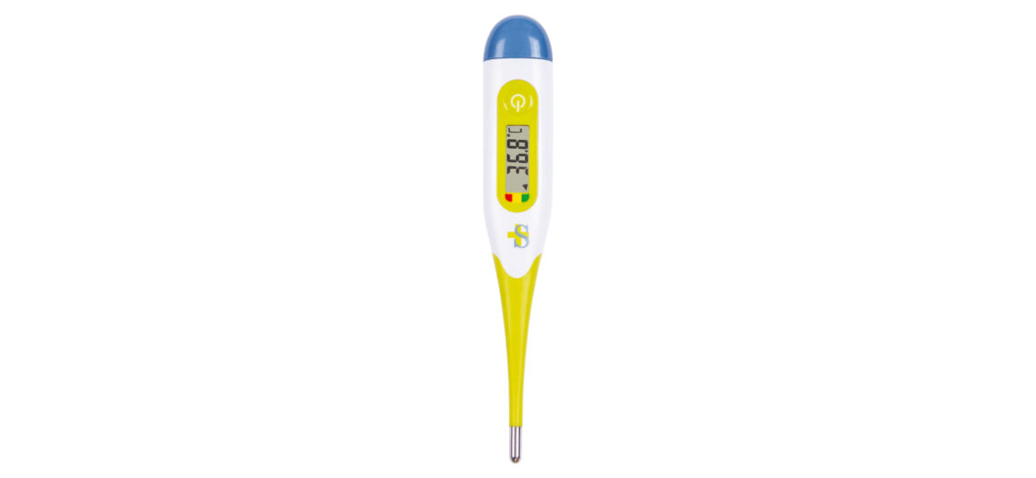 Termómetro clínico digital de punta flexible y pantalla LCD.